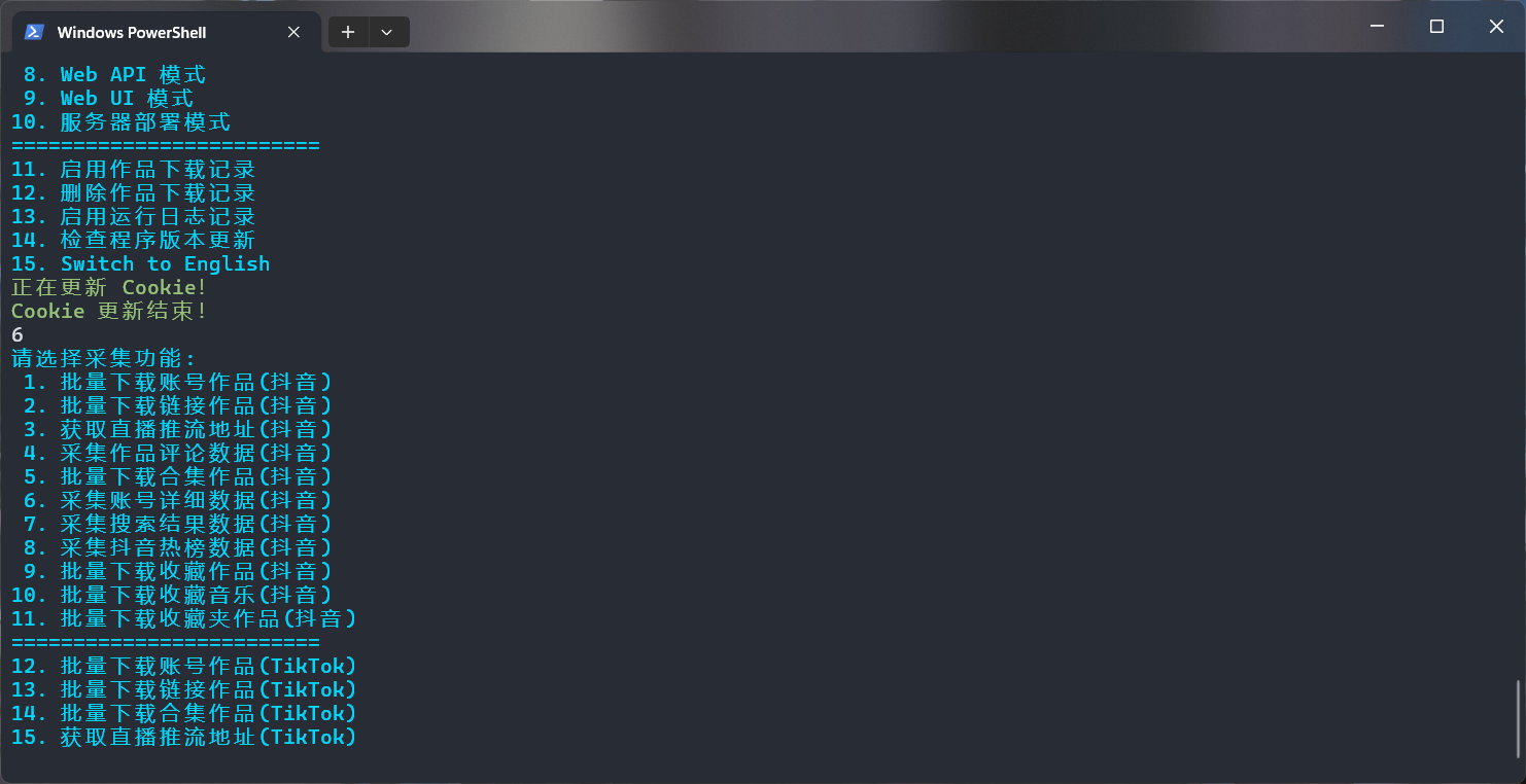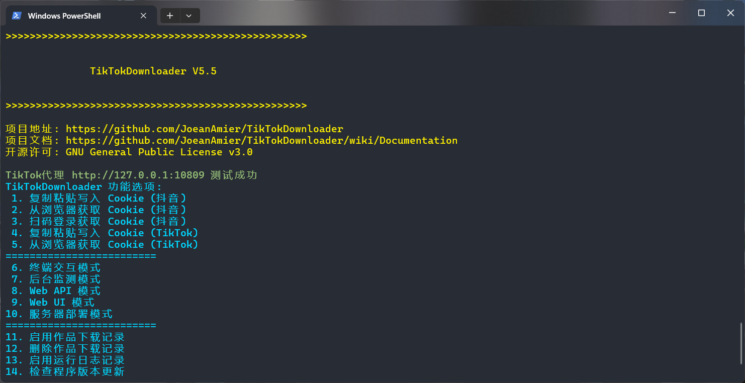 运行 python .\main.py 或者 python main.py 命令启动 TikTokDownloader