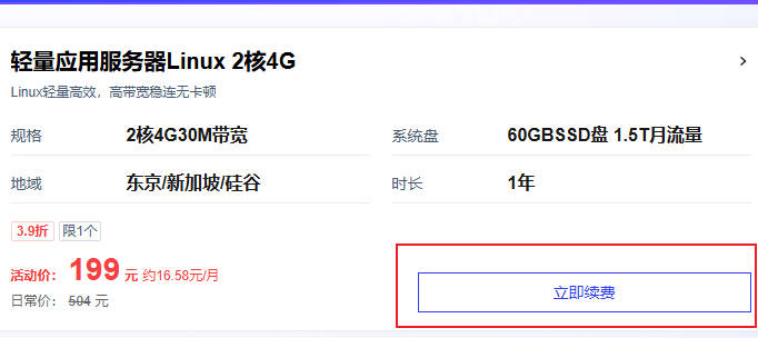 去了哪里续费?接下来的骚操作就是继续去活动页面找到自己新购的产品开始续费
