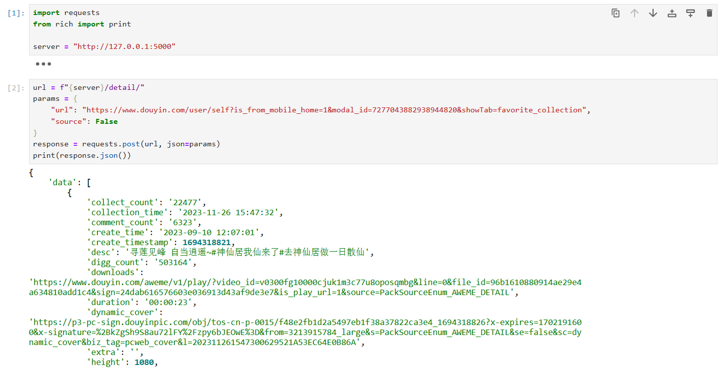 输入抖音作品链接即可下载作品文件(TikTok 平台需要更多初始设置,详见文档)